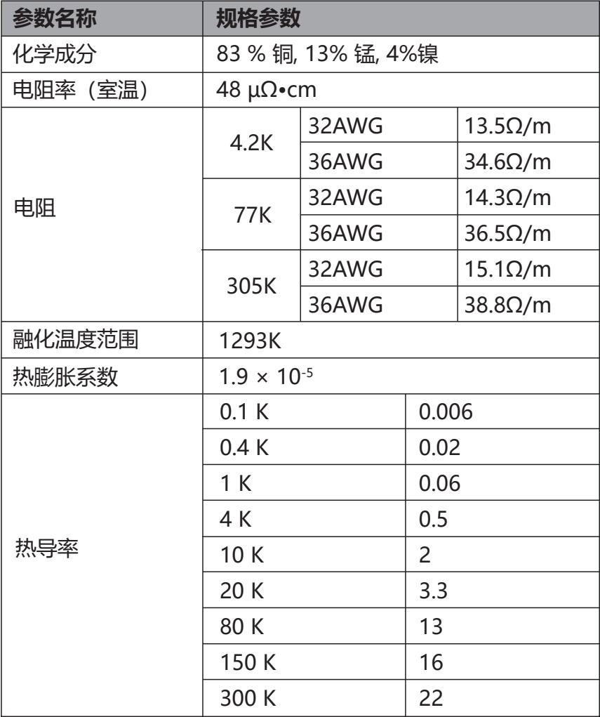 低温锰铜线技术参数: