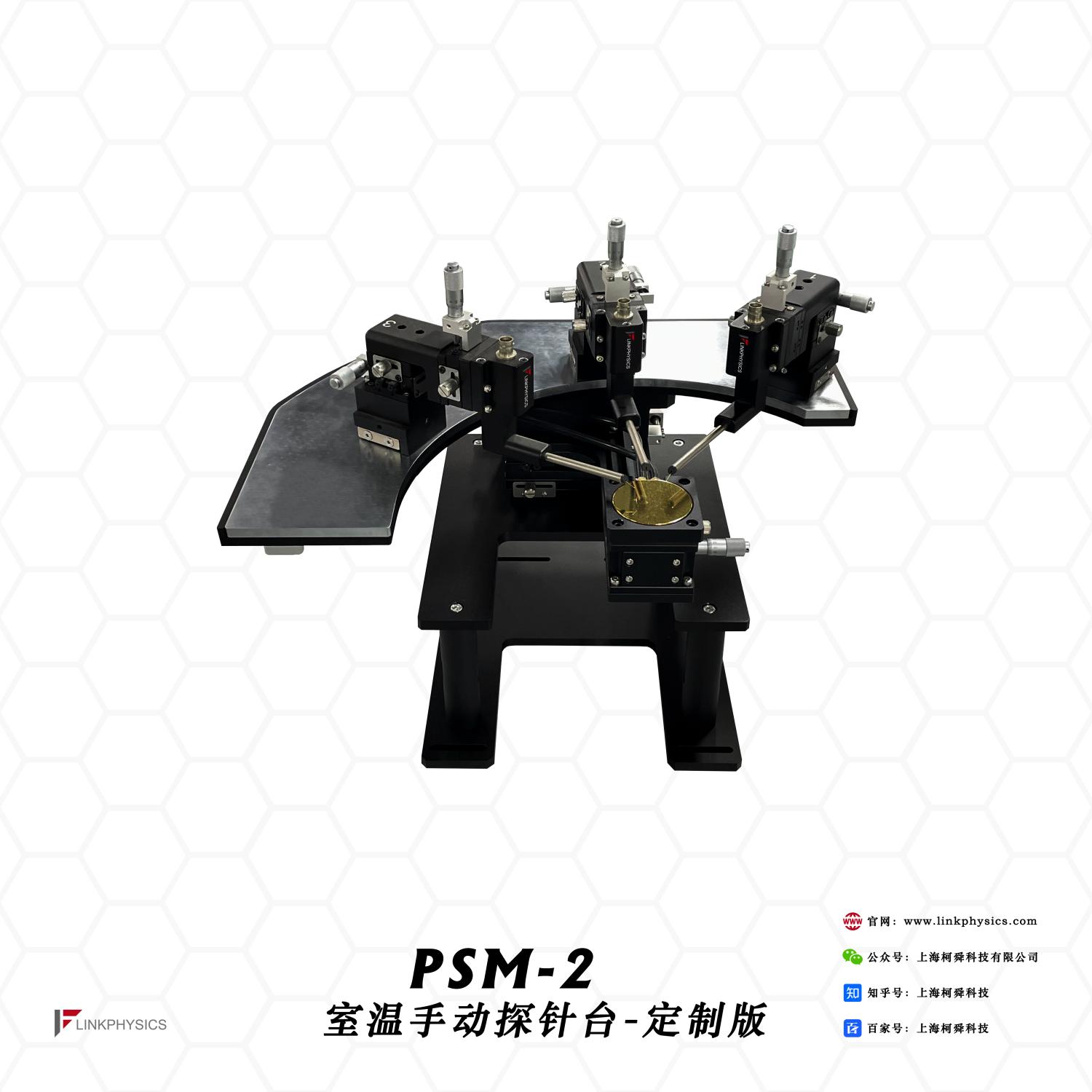 PSM-2室温手动探针台-定制版是一款高品质的定制探针台,能够对2寸晶圆片进行大量非破坏性的、标准的电学实验,外接不同的测试设备,可以完成对器件的电学特性测量、参数测量、DC测量。科学的桌面设计是学术和实验研究的选择。